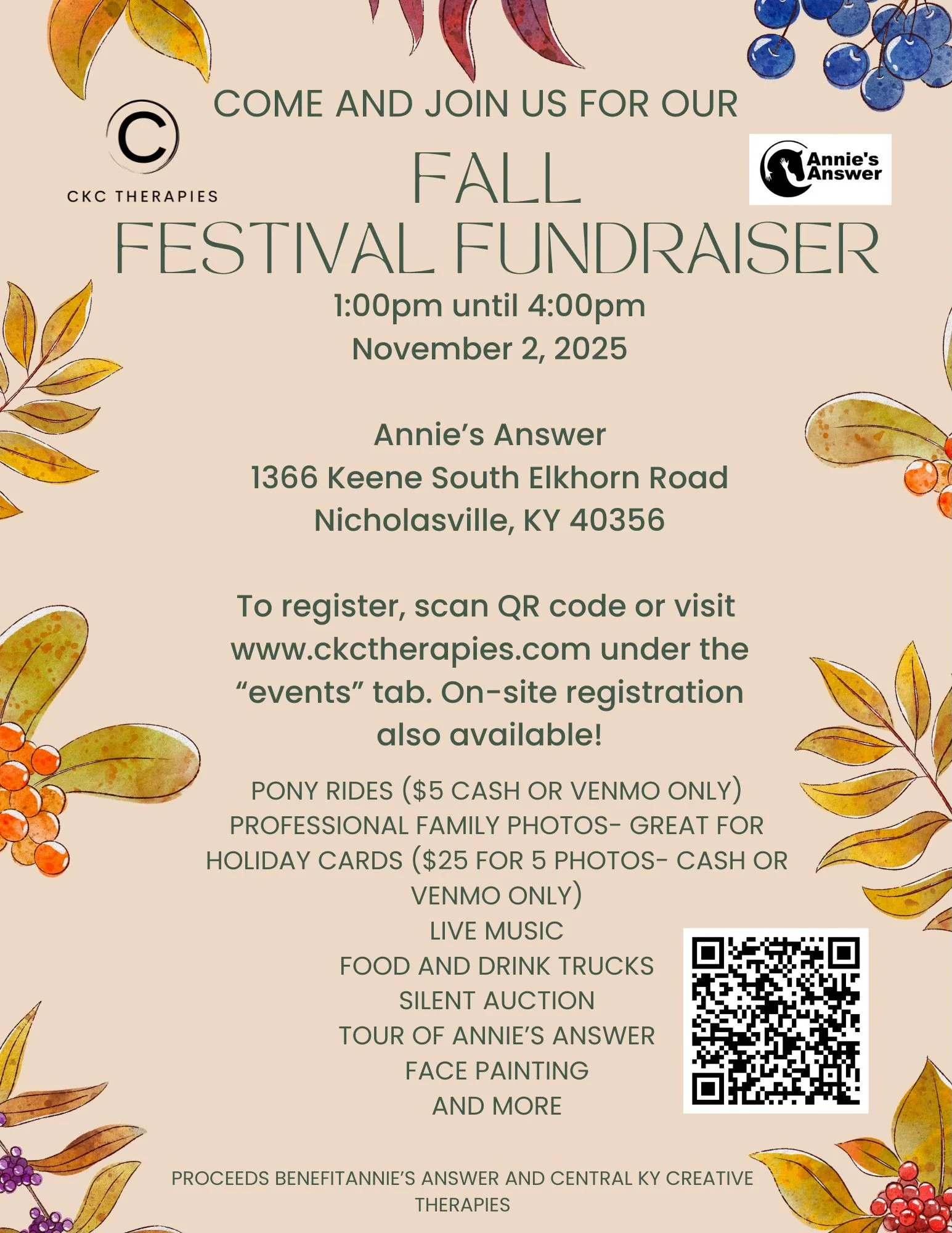 Join us and Odyssey Photography for some amazing Christmas photo sessions with our therapy horses. These will be quick, cute, low stress photos with beautiful therapy horses wearing a Christmas wreath! Perfect for unique, KY spirit, holiday card! Portion of proceeds go to benefit Annie's Answer: an amazing non profit that offers equine therapy, summer camps, and much more! * NONREFUNDABLE $25.00 deposit is required to book.